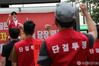 [서울=뉴스핌] 백인혁 기자 = 이스타항공조종사노동조합원들이 20일 오후 제주항공의 모기업 애경 본사 앞에서 이스타항공의 인수를 촉구하는 이스타항공노동자 8차 총력결의대회를 하고 있다. 2020.07.20 dlsgur9757@newspim.com