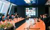 ▲SK텔레콤은 HPE APAC 및 한국 HPE와 21일 서울 을지로 SKT본사에서 ‘MEC컨소시엄’ 구성에 관한 협력 계약서를 체결했다. 사진 왼쪽부터 김윤 CTO, 하형일 SK텔레콤 코퍼레이트2센터장, 함기호 한국HPE 대표가 영상회의를 통해 싱가포르의 나린다 카푸어 HPE APAC대표(화면)와 컨소시엄 계약을 체결하고 있다. |