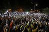 20일(현지시간) 미국 오리건주 포틀랜드에서 인종차별과 경제적 불평등 철퇴를 촉구하는 시위대가 휴대폰 손전등을 켜는 퍼포먼스를 벌이고 있다. 포틀랜드|로이터연합뉴스 |