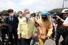 이재명 경기도지사가 용인 물류센터 화재현장을 찾아 소방관계자의 설명을 들으며 이동하고 있다. |