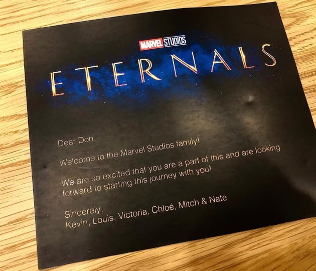 첫 번째 사진에서 마동석은 마블 측에서 보낸 선물을 가리키며 미소 짓고 있다. 마동석의 두꺼운 팔뚝이 시선을 강탈한다. 두 번째 사진에서 마블 측이 마동석에게 보낸 메시지에는 마블의 일원이 된 마동석에게 감사와 환영 인사의 내용을 담고 있다. 세 번째 사진은 길가메시라는 마동석의 배역 이름이 적힌 의자다.