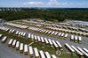 지난 13일(현지시간) 학교 정상화 기다리는 미국 스쿨버스 차고지의 모습 |