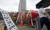윤석열 검찰총장이 취임 1년을 맞은 23일 서울 서초구 대검청사 앞에 윤 총장을 응원하는 현수막과 화환이 세워져 있다. 서상배 선임기자 |