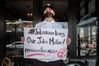 한 요하네스버그 식당 주인이 지난 22일 봉쇄령에 항의하는 시위를 하고 있다. |