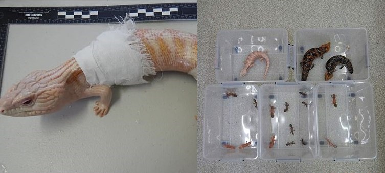 호주 퀸즈랜드 주 우체국 직원은 중국으로 보내지는 택배상자를 검사하는 중 전기밥통이라고 적힌 상자의 엑스레이 사진에서 이상한 형태의 그림자들을 발견했다. 우체국 직원은 경찰의 공조하에 해당 전기밥통 상자를 열어보니 놀랍게도 그 안에는 살아있는 희귀 도마뱀들이 숨겨져 있었다.