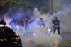26일(현지 시각) 미국 오레곤주 포틀랜드에서 연방 요원들이 최루탄을 발사하며 시위대를 해산하고 있다./AFP 연합뉴스 |