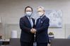 두 사람은 취재진 앞에서 3분여간 만난 뒤 지사 집무실로 옮겨 15분간 비공개 면담도 가졌다.