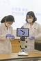 서울시 상수도사업본부 물연구원들이 28일 서울 중구 서울시청 브리핑룸에서 열린 서울시 수돗물 유충관련 기자설명회에서 민원인이 발견한 유충을 현미경으로 확인하고 있다. 서울시는 이날 '수돗물 유충' 민원 원인에 대해 "수돗물 공급계통이 아닌 외부요인에 의한 것"이라고 최종 결론 내렸다. 사진=박범준 기자