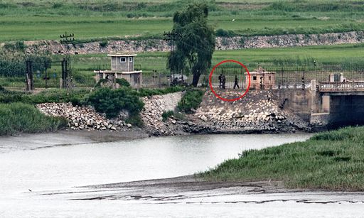 北 배수로 초소 군 당국은 최근 월북한 탈북민 김모씨가 인천 강화도 월미곳에 있는 정자 ‘연미정’ 인근 배수로를 통해서 구명조끼를 입은 채로 한강을 건넌 것으로 보고 있다고 28일 밝혔다. 사진은 이날 오후 인천 강화군 접경지역에서 바라본 북한 개풍군의 한 배수로 초소에서 북한군(원 안)이 근무하는 모습. 강화=하상윤 기자 |