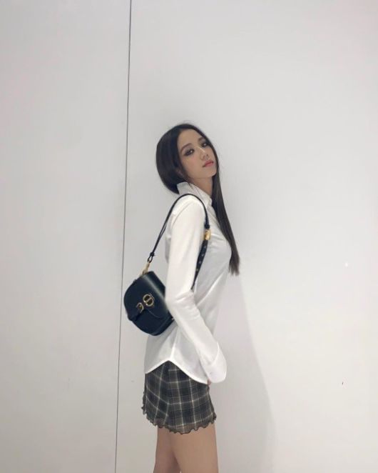 공개된 사진 속 지수는 브라톱에 흰색 와이셔츠, 짧은 체크 치마를 입은 채 카메라를 응시하고 있다. 가볍게 걸쳐맨 명품가방도 눈길을 사로잡는다. 긴생머리를 옆으로 자연스럽게 넘긴 지수의 섹시한 미모가 시선을 끈다.