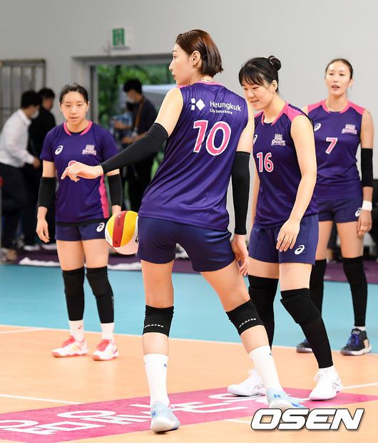 [OSEN=용인, 조은정 기자] 29일 오전 경기도 용인 흥국생명연수원에서 흥국생명 핑크스파이더스 미디어데이 행사가 열렸다. 흥국생명 김연경이 훈련 중 공을 엉덩이로 쳐내고 있다. /cej@osen.co.kr