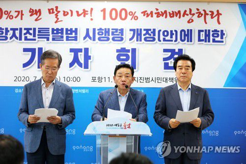공 위원장을 비롯해 포항 각계각층은 특별법에 규정한 실질적 피해 구제는 100% 배상을 의미하기 때문에 입법예고한 시행령 개정안은 법 제정 취지에 맞지 않는다는 견해를 보인다.