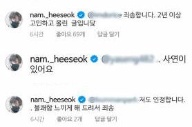 남희석은 비난 댓글에 “죄송하다, 2년 이상 고민하고 올린 글이다”, “사연이 있다”, “저도 인정한다. 불쾌감을 느끼게 해 드려 죄송하다”등의 댓글을 달았다.