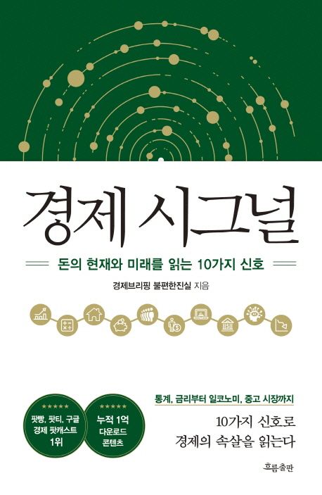 ■경제시그널(경제브리핑 불편한진실 지음, 흐름출판 펴냄)=1억 누적 다운로드를 자랑하는 경제 팟캐스트 ‘경제브리핑 불편한진실’을 통해 경제의 불편한 진실을 파헤쳐 온 경제 기자 출신 이국명·박성훈 PD가 돈의 현재와 미래를 읽는 법을 제안한 책이다. 저자들은 일상이 보내는 신호에 열쇠가 있다고 말하며 ‘10가지 신호를 통해 경제의 원리를 읽는 방법’을 소개한다. 돈의 현재를 읽는 5가지 신호로는 통계, 금리, 부동산, 재정, 인구를 꼽았고, 부의 미래를 결정할 5가지 신호로는 일코노미(1인 이코니미), 비즈니스 플랫폼, 중고 시장, AI, 제로 금리를 꼽았다. 1만6,000원.