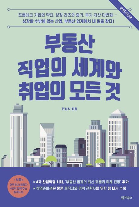 ■부동산 직업의 세계와 취업의 모든 것(민성식 지음, 원더박스 펴냄)=많은 이들이 미래에 사라질 직업으로 부동산 중개인을 꼽는다. 하지만 공인중개사는 수많은 부동산 관련 직종 중 하나에 불과하며, 부동산 직종은 4차 산업혁명으로 다양한 형태로 진화하고 있다. 상업용 부동산 전문가인 저자가 부동산 업계의 큰 그림을 보여 주며 독자들을 구체적인 부동산 직업의 세계로 안내한다. 2017년 출간된 책의 전면개정판으로, 부동산 산업 각 분야 전문가 10인의 인터뷰 등 부동산 업계로 진입하려는 사람들을 위한 정보가 알차게 구성됐다. 1만8,000원.