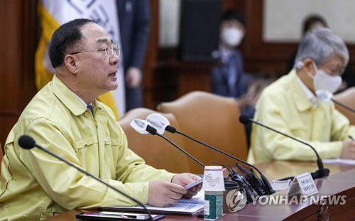 비상경제 중대본 회의서 발언하는 홍남기 |