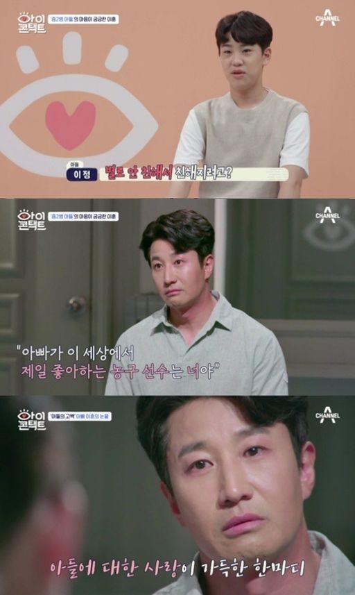 지난 29일 방송된 아이콘택트에서 게스트로 출연한 이훈은 사춘기를 맞아 변해버린 아들을 눈 맞춤 상대로 불렀다.