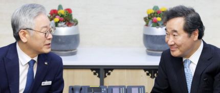 경기도청 접견실에서 가진 회동에서 이 지사는 "총리로 재직 중이실 때 워낙 행정을 잘해주셨다"며 "경험도 많으시고 행정 능력도 뛰어나셔서 문 대통령님의 국정을 잘 보필해 국정을 잘 이끌어주셔서 국민의 한 사람으로서 고맙게 생각한다"고 먼저 덕담을 건넸다.