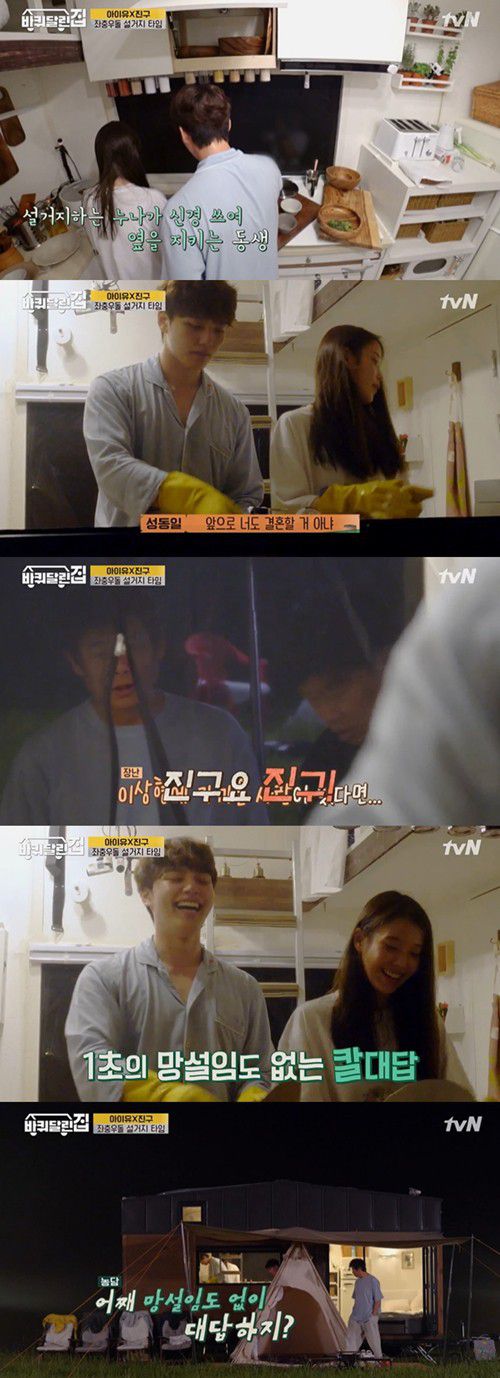 30일 오후 방송된 tvN ‘바퀴 달린 집’에는 여진구, 아이유가 설거지를 하는 모습이 그려졌다.