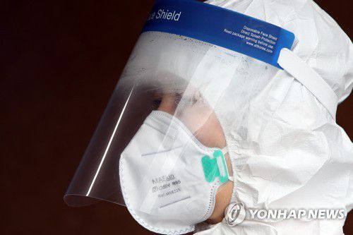(광주=연합뉴스) 정회성 기자 = 지난 15일 오전 광주 동구청 주차장에 마련된 신종 코로나바이러스 감염증(코로나19) 선별진료소에서 의료진이 습기 찬 얼굴 가리개를 쓰고 검체 채취를 하고 있다. 2020.7.15 hs@yna.co.kr |