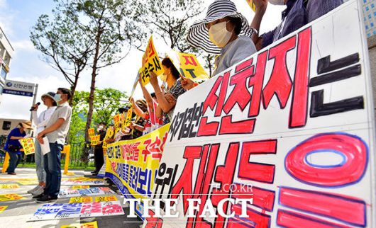 [더팩트ㅣ수원=임영무 기자] 전국신천지피해자연대 회원들이 31일 오전 이만희 신천지 총회장의 구속 영장실질심사가 열린 경기 수원시 수원지방법원 앞에서 이 총회장 구속을 촉구하는 기자회견을 갖고 있다. darkroom@tf.co.kr사진영상기획부 photo@tf.co.kr