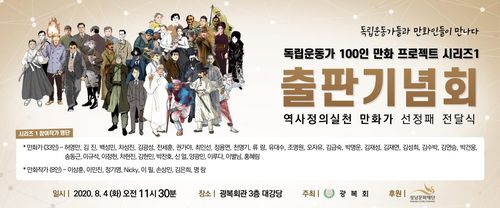 ▲ 광복회는 광복절 75주년을 앞두고 내달 4일 오전 11시 30분 광복회관 3층 대강당에서 '독립운동가 100인 만화 프로젝트 시리즈 1' 출판기념회를 개최한다. 광복회는 성남문화재단과 독립운동가 100인 웹툰을 다시 만화로 출판하는 작업을 해왔으며, 첫 번째 시리즈 백범 김구 선생과 영화인 나운규 선생 등 33인에 대한 만화다. (서울=연합뉴스)