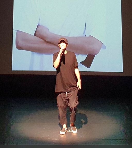 인덕대학교 방송연예과에서 교수를 맡고 있는 신현준은 모자부터 신발까지 온통 검은색으로 몸을 두른 채 공연을 마친 학생들을 향해 강연했다.