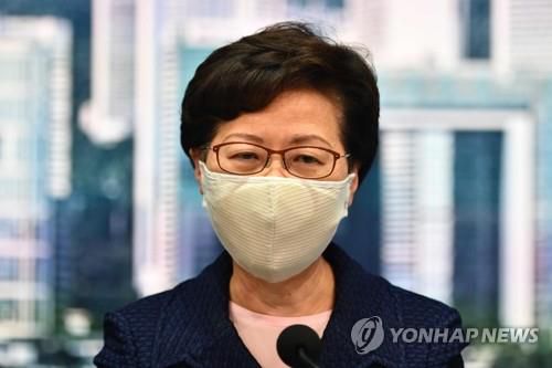 입법회 의원 선거 연기 밝히는 캐리 람 |