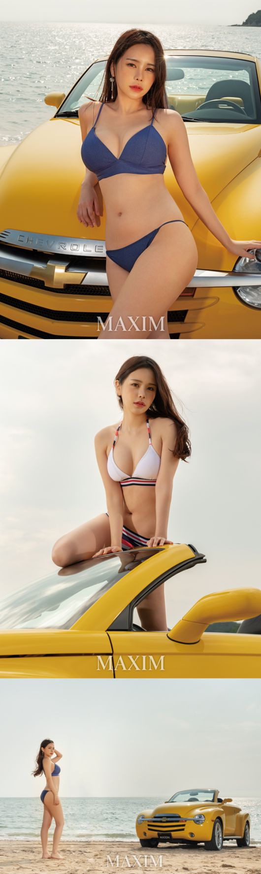 맥심의 '독자의 차 화보 촬영 프로젝트'는 실제 맥심 독자들의 애마와 미스맥심 모델들이 함께 꾸미는 인기 코너다. '여름 비키니 특집'답게 이번 '독자의 차' 화보 역시 시원한 비키니 화보가 등장한다. 사진 속 노란 오픈카는 쉐보레의 SSR로, 차주 김진민 독자에 따르면 "국내에 5~6대 밖에 없는 귀한 모델"이라고.