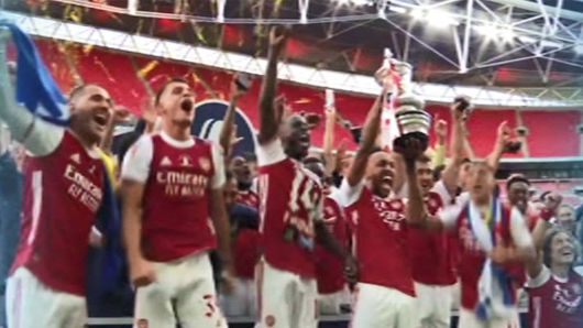 2대 1 역전승으로 FA컵 통산 14번째 우승을 차지한 아스날 선수들은 단체로 춤을 추며 축제를 만끽했습니다.