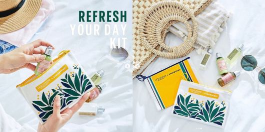 스타벅스와 록시땅의 콜라보로 마련된 이번 '리프레시 유어 데이 키트'는 여름 프로모션 음료 1종을 포함해 2만 원 이상 구매 시, 키트 2종 중 1종을 랜덤으로 증정한다.
