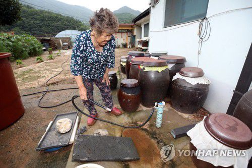 집 마당에 놓인 300ℓ짜리 대형 고무 대야에 물이 채워지자 이씨는 비로소 한시름 놓는 표정을 지었다.