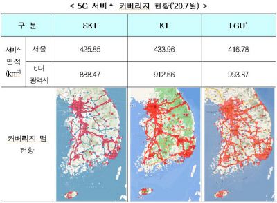 SK텔레콤의 5G 다운로드 속도는 빨랐지만, 타사에 비해 가장 적은 지역에서 접속됐다. 서울시에서 5G가 가장 잘 접속되는 통신사는 KT(433.96㎢), SK텔레콤(425.85㎢), LG유플러스(416.78㎢)순이었다. 서울시에서의 통신3사의 커버리지는 큰 차이가 나지 않았다.