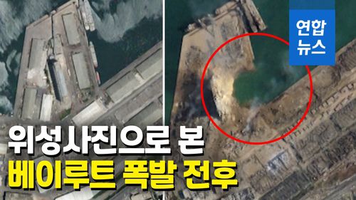 (서울=연합뉴스) '중동의 파리' 레바논 베이루트를 뒤흔든 폭발의 충격이 위성사진으로도 확인됐습니다.