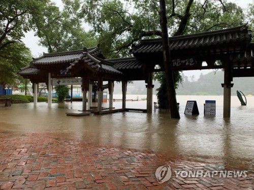 아시아투데이 박세영 기자 = 경기 가평군 북한강에 있는 자라섬과 남이섬이 물에 잠겼다.