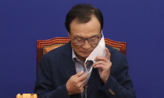 더불어민주당 이해찬 대표가 지난 달 22일 국회에서 열린 최고위원회의에 참석하고 있다. 오종택 기자 |