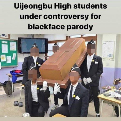 샘 오취리는 6일 자신의 인스타그램에 의정부고가 패러디한 관짝소년단 사진을 첨부하며 "2020년에 이런 것을 보면 안타깝고 슬프다. 웃기지 않다. 흑인들 입장에서 매우 불쾌한 행동이다"라며 "제발 하지 말라. 문화를 따라 하는 것은 알겠는데 굳이 얼굴에 색칠까지 해야 되느냐"고 지적했다.