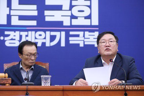 최고위원회의 발언하는 민주당 김태년 원내대표 |