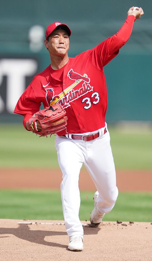 지난 2월 26일(현지시간) 세인트루이스 선발로 등판한 김광현이 역투하고 있는 모습. 연합뉴스 |