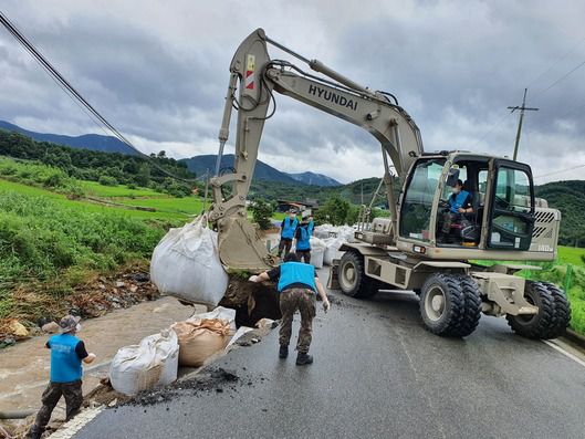 제91항공공병전대와 대한기계설비건설협회, LH토지주택공사 등 기관들은 인력뿐 아니라 굴착기, 덤프트럭, 포크레인 등 복구작업에 필수적인 중장비도 적극 지원해 큰 힘이 되고 있다.