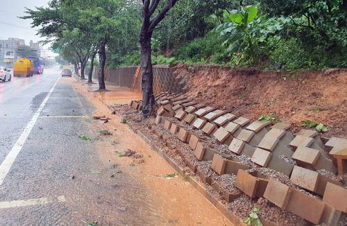 폭우로 대야면 대야시장 사거리의 옹벽이 무너져내렸고 나포면에서도 경사면이 유실됐다는 신고가 들어왔다.
