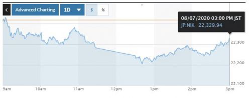 일본증시 닛케이 225지수 추이. 7일 종가 기준 2만2329.94 출처 마켓워치 |