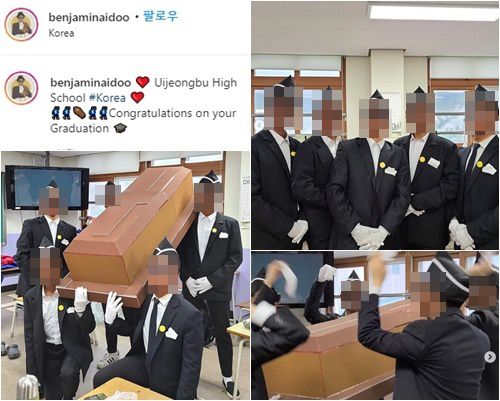이와 함께 '관짝소년단' 밈의 실제 주인공인 벤자민 아이두는 자신의 인스타그램에 "Uijeongbu High School #Korea Congratulations on your Graduation"(의정부고등학교 #한국 졸업 축하해)"라는 글을 비롯해 의정부고 학생들이 패러디한 졸업 사진을 남겼다. 당사자가 흑인 분장을 유쾌하게 받아들이고 졸업을 축하하면서 인종 차별 논란은 마무리된 셈이다.