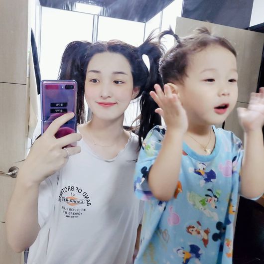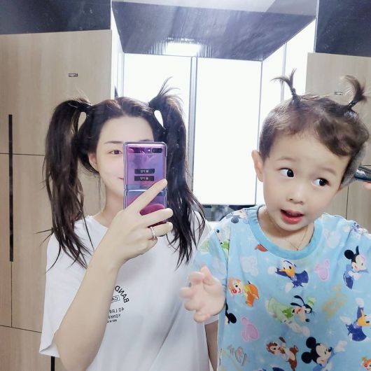 사진 속 율희는 양갈래 머리를 한 채 환하게 웃고 있다. 그리고 그의 옆에 있는 아들 재율이 역시 머리를 질끈 묶고 있어 눈길을 끈다.