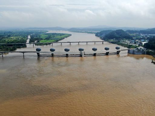 수해 피해가 커지자 정치권에서 ‘4대강 사업’을 놓고 갑론을박이 이어지고 있는 11일 경기 여주시 남한강에 4대강 사업으로 설치된 이포보가 수문을 열어 물을 흘려보내고 있다. 여주=뉴스1 |