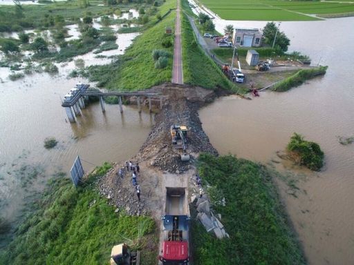 지난 10일 경남 창녕군 이방면 장천배수장 인근 낙동강 둑에서 응급 복구 작업이 시행되고 있다. 연합뉴스 |