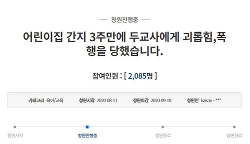 B씨가 청와대 홈페이지에 올린 국민청원 글에는 이날 오전 9시 기준 2천85명이 동의했다.