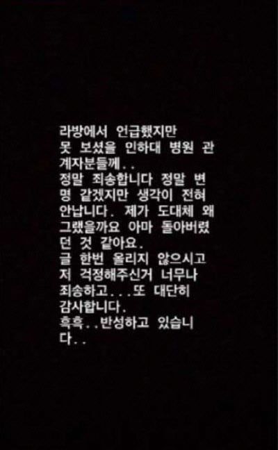 2020년 1월 과거 극단적 선택을 시도했다는 사실 고백