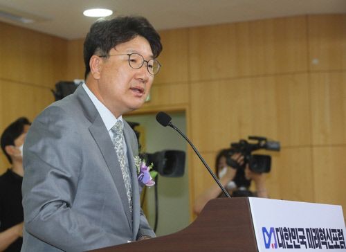 권성동 무소속 의원이 지난 6월9일 국회 의원회관에서 열린 ‘대한민국 미래혁신포럼’ 21대 국회 개원 기념 특별강연에서 축사하고 있다. 연합뉴스 |