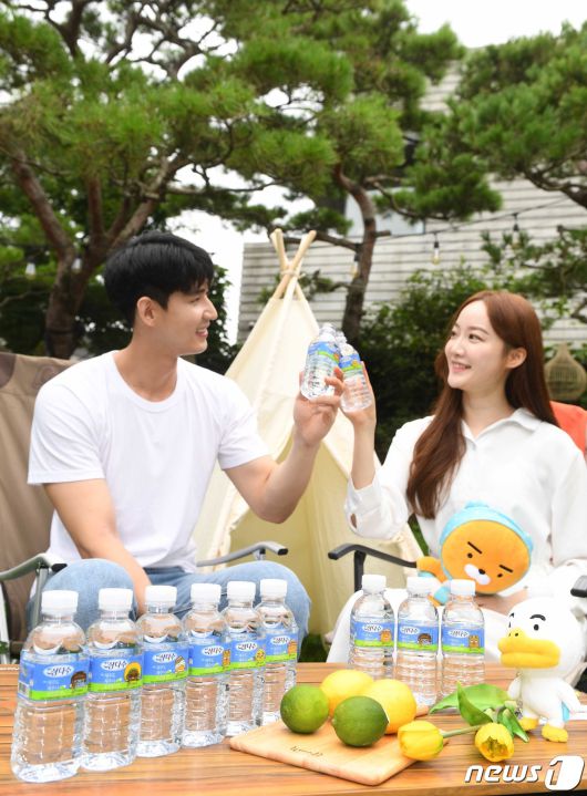 (서울=뉴스1) = 12일 서울 염곡동 스튜디오에서 모델들이 ‘제주삼다수x카카오프렌즈 캠핑 에디션’을 선보이고 있다.